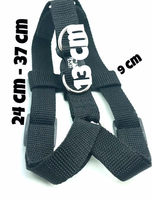 Adjustable for a comfortable fit, with two D rings for attaching your lead.