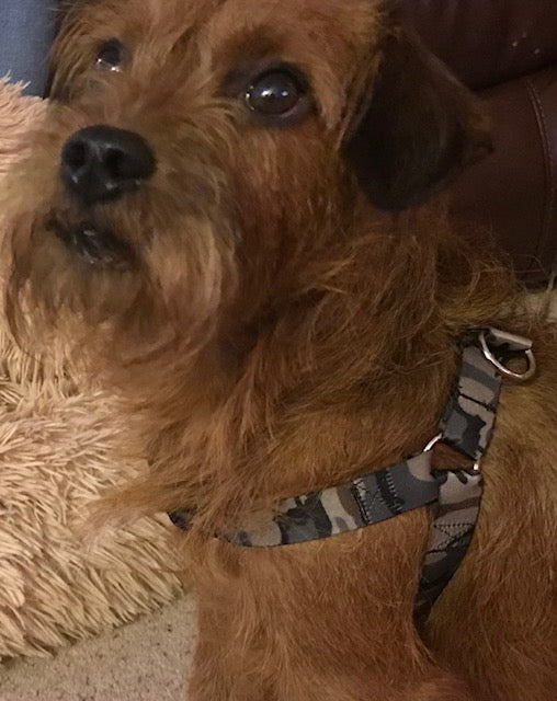 A Flo dog harness is a handmade, lightweight webbing harness.