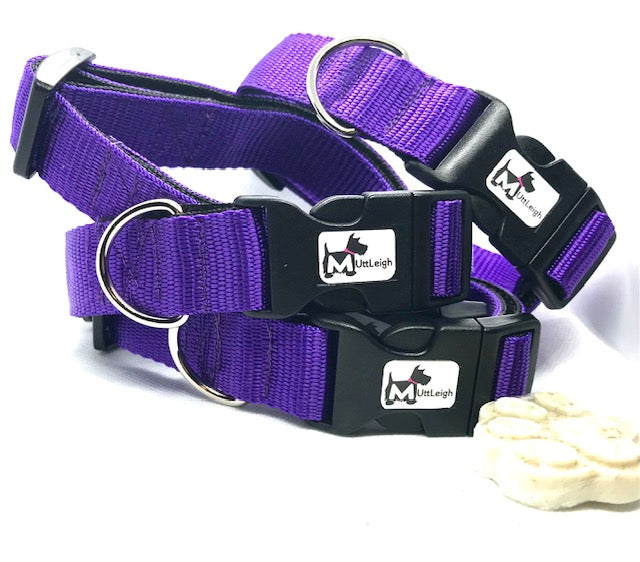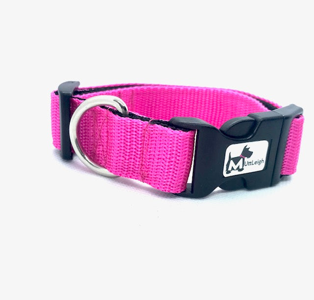 Handmade bright and colourful dog collar, with contrasting backing webbing, for style and strength.
